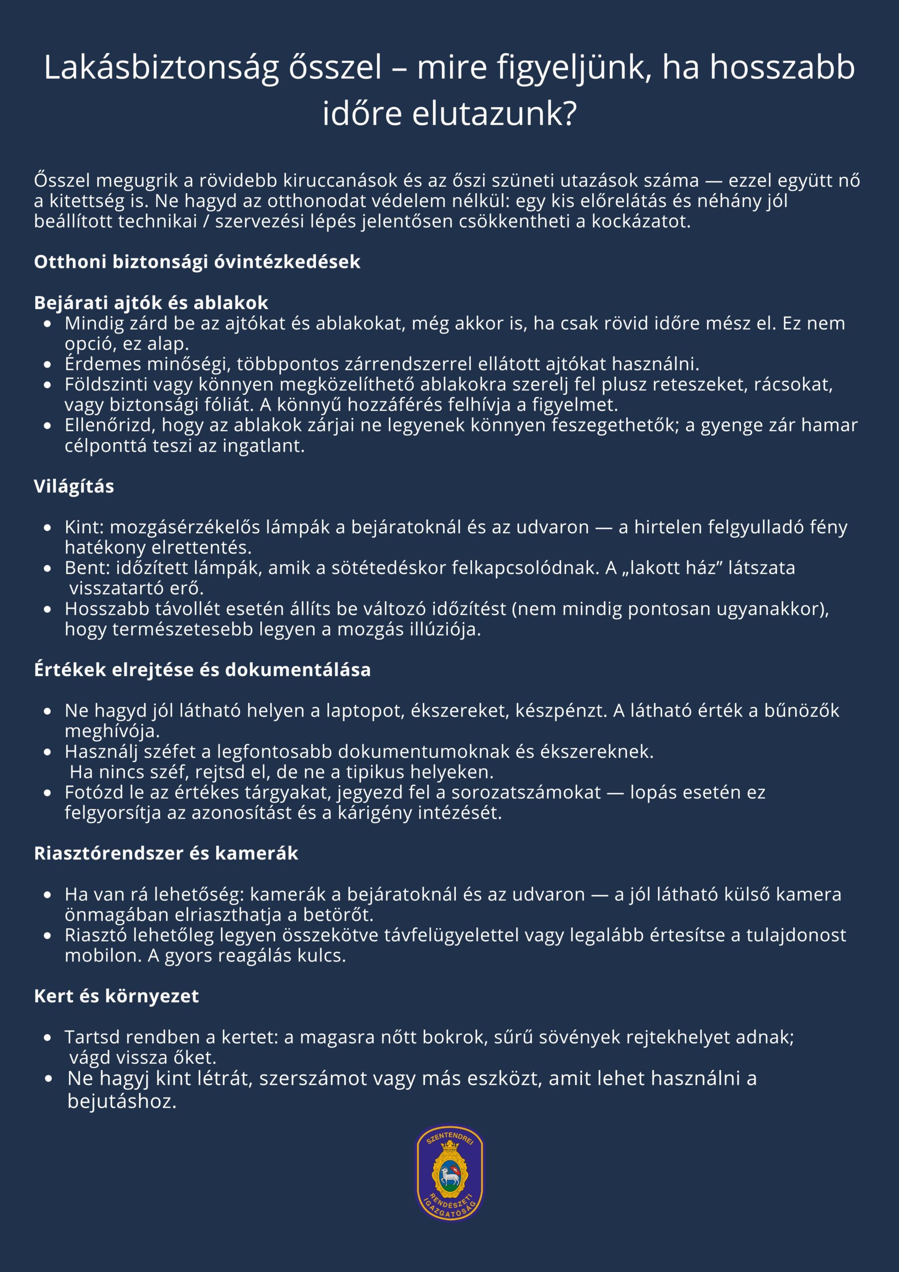Lakásbiztonság ősszel – mire figyeljünk, ha hosszabb időre elutazunk?